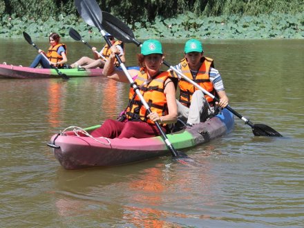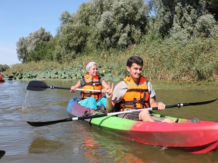 We suggest using kayaks for lovers of active and environmentally friendly recreation. These are 2-seater boats with a rigid plastic hull designed for use in water with a weak current. Kayaks are designed for deep rowing, which provides easier control.