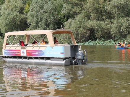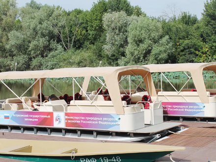 Excursions on water routes are carried out by boating boats, its named “Budarka”. This type of boat has long been used in our region. They have good cross in shallow water, very light on the go, roomy and comfortable. This deep inside boat has great stability on the water and meets all safety requirements. Its contours and hull design are honed by the experience of many generations of sailors. This boats are presented in the Astrakhan reserve in the most modern configuration.